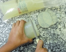 Despeje o conteúdo num molde, pulveriza-se com álcool de cereais, caso haja espuma. Deixa-se secar no mínimo 04 horas. Desenforma-se e embala-se com papel filme.