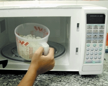 No Microondas: Corta-se a base em cubos de aproximadamente 2 cm. Coloca-se num recipiente próprio, pulveriza-se com álcool de cereais. Na potência máxima deixe por 30 segundos. Descansa por mais 30 segundos. Repete-se o processo até derreter a base totalmente.